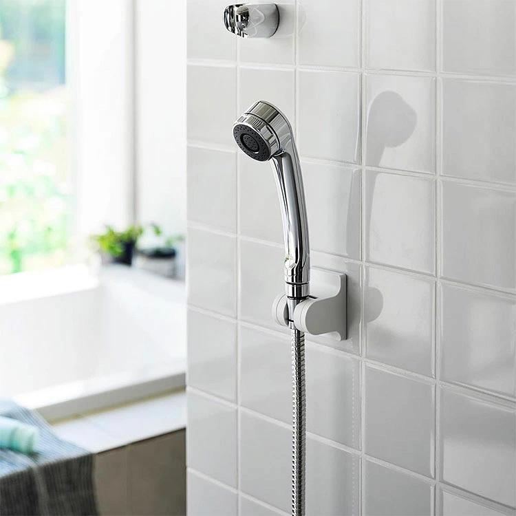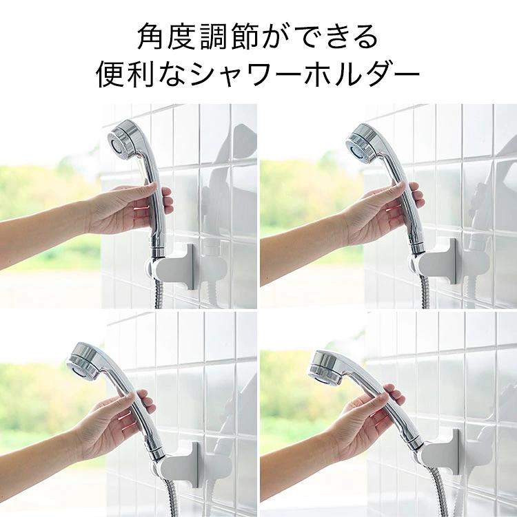 【角度が調節できるフィルムフックシャワーホルダー】フィルムフックでお好みの位置に簡単取り付け!3段階の角度調節ができる便利なシャワーホルダーです。内側のストッパーで、水圧がかかってもズレにくく、浴槽まわりに取り付ければ、お子様やペットのシャワーの際にも便利です。