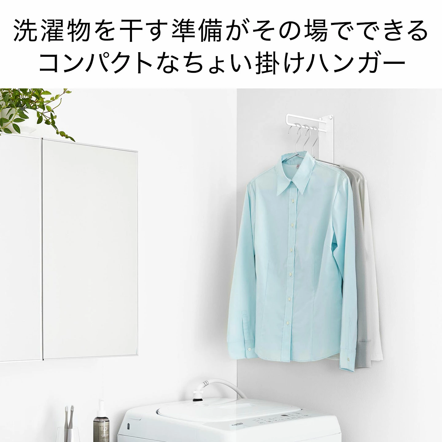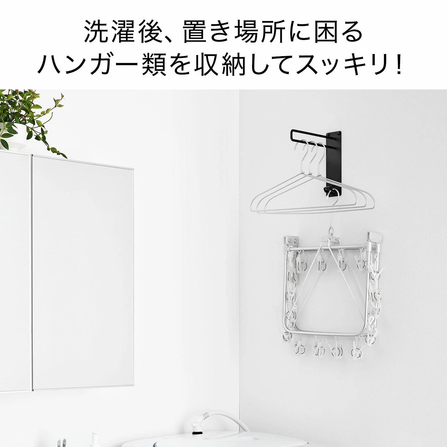 【壁付けちょい干しハンガー】石こうボードピンで簡単に設置できる、便利なちょい干しハンガーです。洗濯後の衣類をサッと一時掛けできて便利!フックにピンチハンガーを掛ければ、靴下などの小物干しもスムーズに行えます。洗濯ハンガーやピンチハンガー、洗濯ネットの収納にも役立ちます。洋服やバッグ収納用として、リビングに設置するのもおすすめです。壁の穴が目立ちにくい石こうボードピンで簡単取り付け。木ネジでも取り付け可能。