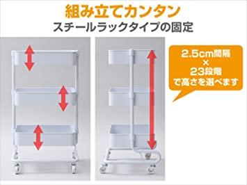 ●3つのバスケットは入れるモノに合わせて、2.5cm間隔、23段階で高さを選んで設置可