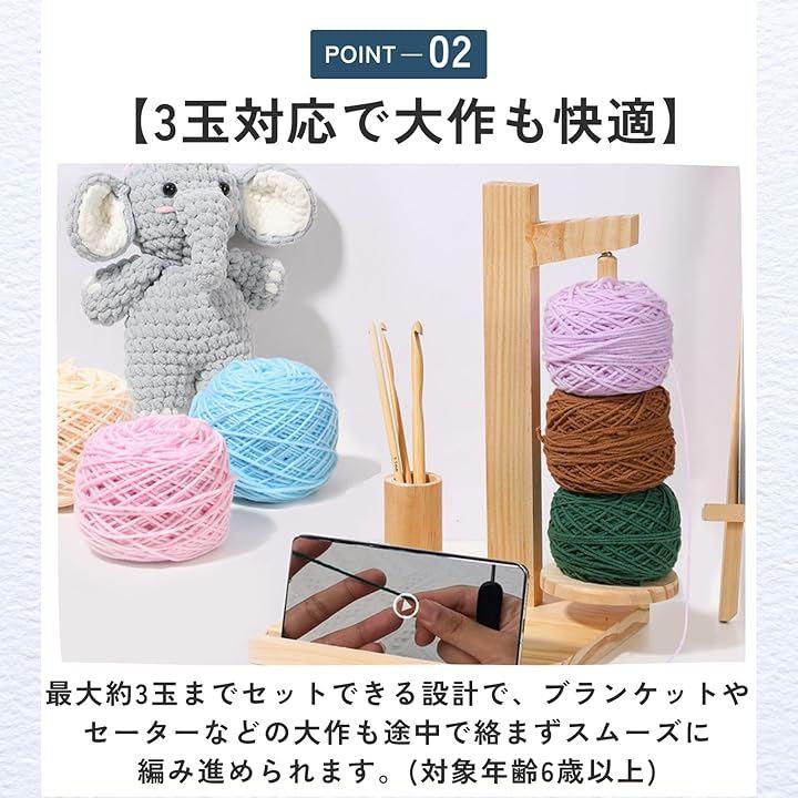 「3玉対応で大作も快適」最大約3玉までセットできる設計で、ブランケットやセーターなどの大作も途中で絡まずスムーズに編み進められます。