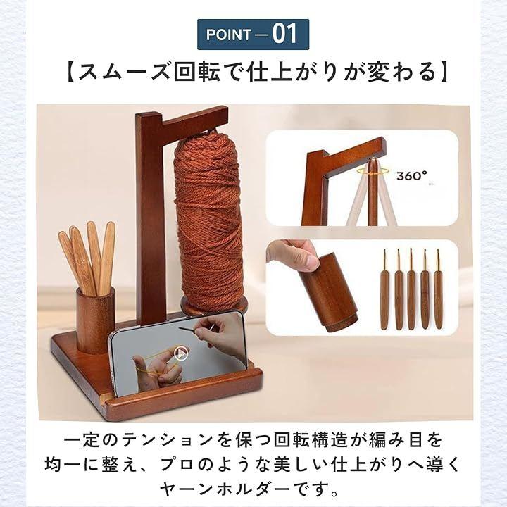 「スムーズ回転で仕上がりが変わる」一定のテンションを保つ回転構造が編み目を均一に整え、プロのような美しい仕上がりへ導くヤーンホルダーです。