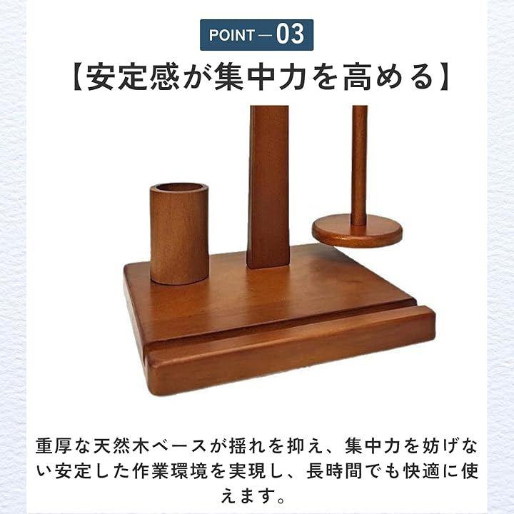 「安定感が集中力を高める」重厚な天然木ベースが揺れを抑え、集中力を妨げない安定した作業環境を実現し、長時間でも快適に使えます。