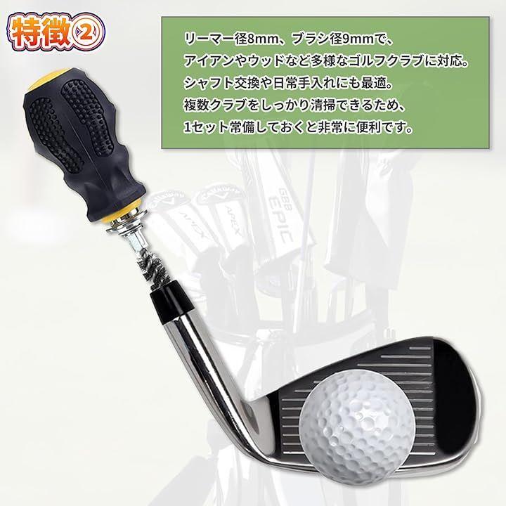 最適設計のリーマー径約8mm、ブラシ径約9mmで、アイアンやウッドなど多様なゴルフクラブに対応。