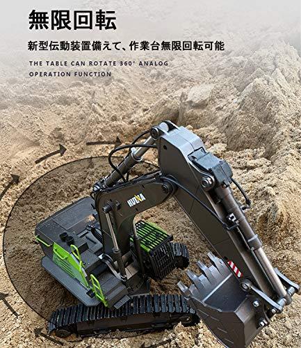 【合金強化版】:1/14モデル、細部にまで徹底的にこだわったディテール。外観は実際のものを基準にしてデザインされて、リアルで本物とそっくりです。 【DIY、パーツ交換】:バケット、グリッパー、ハンマー、フォークにそれぞれパーツ交換が可能。パーツは付属していません。 【リモコン制御】:22通りのショベルカーは、無線2.4GHzを採用しており、約30-100m以内の制御距離です。複数台が同時に走行は可能で、他のおもちゃとも干渉しません。 【優れた性能】:前進、後退、左右旋回、無限回転可能、物をさまざまな方向に簡単に移動できます。小さい山や障害物を乗り越えることも可能で、まさに本物の働く車と同じような作業体験ができます。2つのアームと掘削シャベルを上下に操作し、各ジョイントは独立して制御することができます。シャベルに土や砂などを積み下ろしたり降ろしたりします。屋内と屋外のために適します。 【自動プレゼンテーション機能】:業界初めてのエンジニアリング車両モデルの合金版。RC掘削機は明るいライトとダイナミックなサウンドエフェクト付き、LEDライトが点滅効果、夜はより美しくなります。面白さいっぱいになり、十分楽しめます。適用年齢:8+