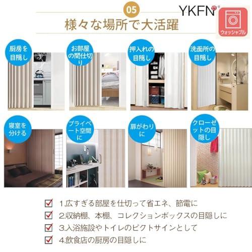 ??【遮光・目隠し・プライバシー保護 】:遮光率:約90% 簡単に目隠しや間仕切りになるアコーディオンカーテン。「玄関や入り口のドアを代わりに」「リビングの断熱に」「窓回りの断熱に」「お部屋の間仕切りに」「キッチンの目隠し」「階段からの冷気・暖気遮断」「玄関の目隠し・空気の入れ替え時」「オフィスやビルなどのガラス張りの遮光、ブラインド代わりに」「お風呂の仕切りに」「脱衣所・更衣室の目隠し・防寒」「洗面スペースの間仕切りに」 ??【サイズ】 :幅60cm*丈100cm*1枚「幅55cm-60cm範囲の設置場所に適応しております」 【セット内容】:カーテン+アジャスターフック+タッセル付き ヒダ:1.5倍ヒダ 【素材】:ポリエステル100% シルクのような光沢とやわらかい触感がとても素晴らしくて、素材は100%ポリエステルなのでご家庭でのお手洗いもOKです。 ??【遮光・UVカット・断熱・保温・省エネ】優れた遮光効果だけでなく、遮熱、保温、そして防音機能も備えています。夏は外部の熱を遮断し、冬は冷気の侵入を防ぎ、室内を快適な温度に保ちます。さらに、外部の騒音や街灯の光も効果的に遮断します。ペットや人間の皮膚を紫外線から守ります。そのため、遮光カーテンは家具や床の色褪せを防ぐだけでなく、室内の美しさを長期間維持します。 ??【取り付け簡単!アジャスターフック付】:カーテンフックはすべてアジャスタータイプです。(アジャスター調整で約1CM長くすることも、約3CM短くすることも可能です。)8色のカラーバリエーションを提供し、リビングルーム、寝室、バルコニーなどでさまざまな組み合わせを楽しめます。 ??【品質保証・洗濯可能】:ご家庭での繰り返しのお洗濯はもちろんOKですが、タンブラー乾燥及び家庭での乾燥機のご使用はお避け下さい。色落ちすることがありますので他の物と分けて洗濯してください。 (#lf)(#lf)(#lf)商品購入前に、ストア紹介ページをご確認ください。