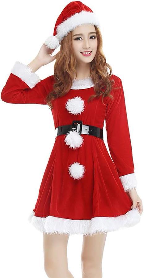 寒い屋外でも楽しめる長袖ワンピースのサンタコスプレ