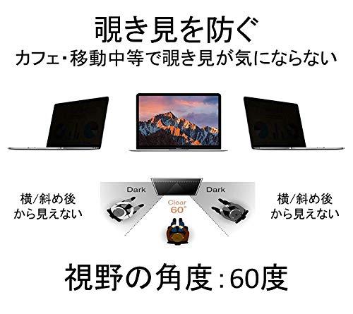 【着脱簡単】マグネットタイプ覗き見防止フィルター: マグネットシールが同封されていますので、マグネットが内蔵されていないパソコンにも対応します。視野の角度:スクリーンの正面を中心に約60度(左右各30度)より外の角 からは画面が真黒に見え、カフェ・新幹線・飛行機等で横からの覗き見を防止できます。*上部の黒い部分(鉄板入り)厚み約1mm、マグネットシール0.5mm/ 両方を貼り付けた場合の厚み約1.5mm。