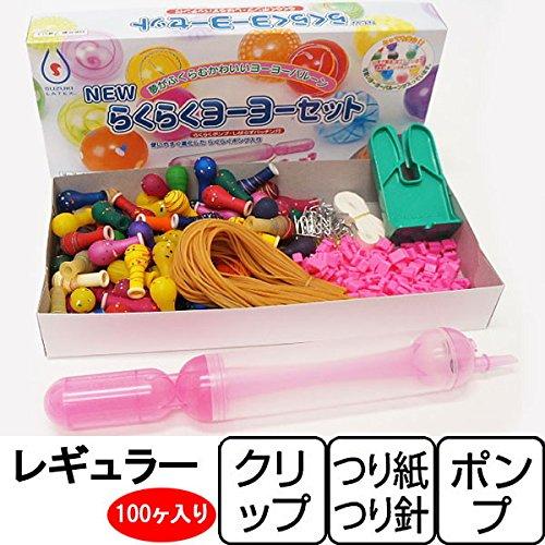 とても人気のある商品です。 風船を膨らますポンプや、セットをするだけで風船をしばらずにすむクリップが付いています。 作り方の説明書も付いていますので、初めての方でも簡単に作れます。 【セット内容】 ヨーヨー風船 100 ヶ/糸ゴム 100 本 つり紙 100 枚/しばらずクリップ 100 ヶ つり針 30 ヶ/ポンプ 1 ヶ しばらずクリップスタンド 1 ヶ