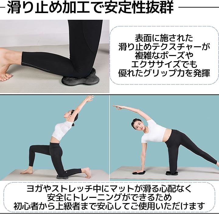 ヨガやストレッチ中にマットが滑る心配なく、安全にトレーニングができるため、初心者から上級者まで安心してご使用いただけます。