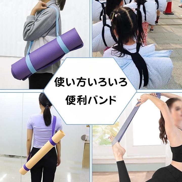 「多用途な使用」このバンドは、ヨガマットの持ち運びだけでなく、ストレッチやエクササイズの補助ツールとしても活用できます。