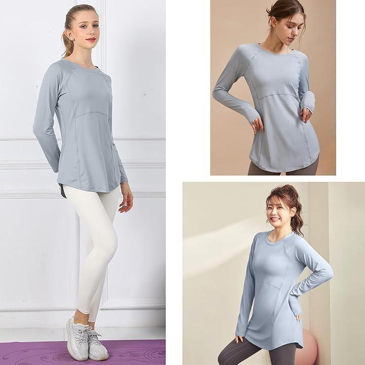 「ロング丈」お尻が隠れる丈長めのヨガウェアは体型カバーに役立ちます。