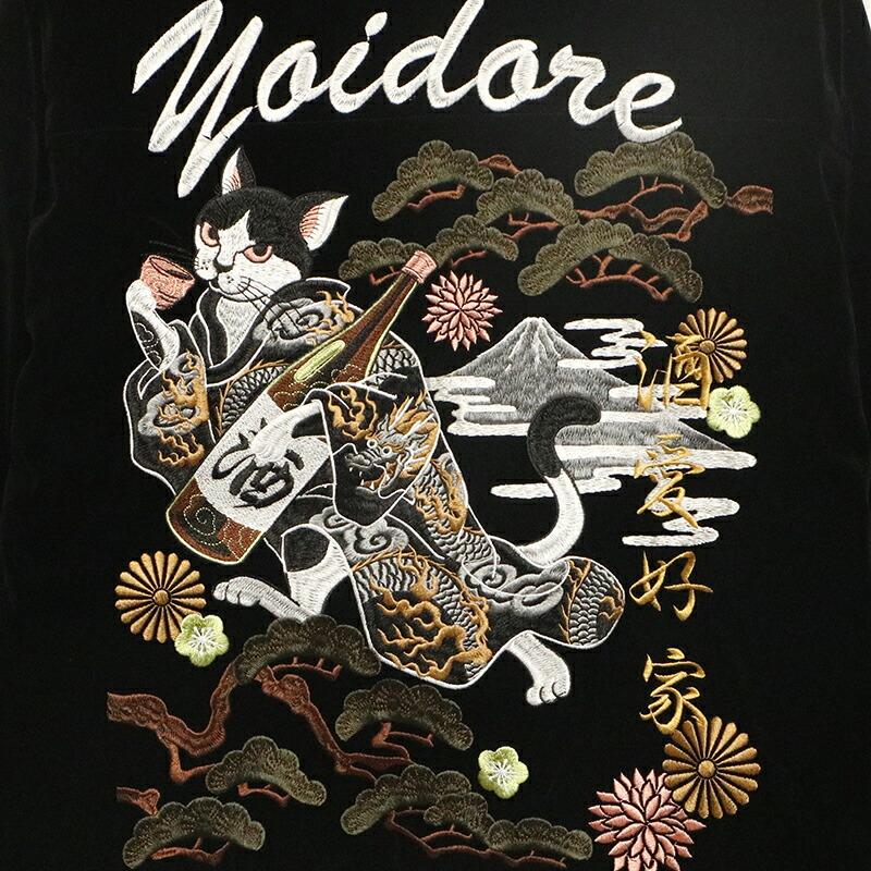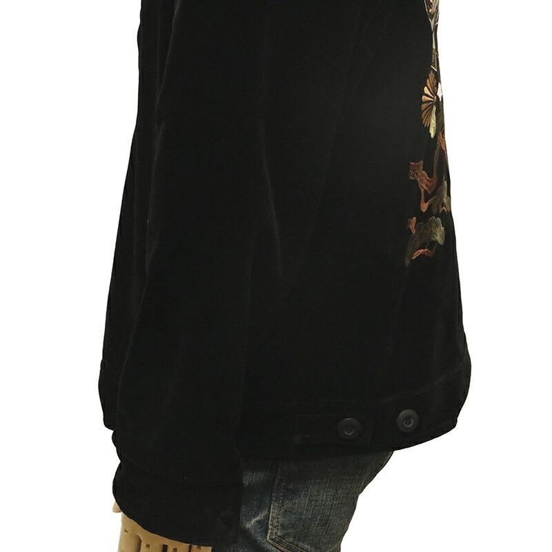 光沢感があり、艶っぽい高級感が漂う別珍素材側は超人気デザインの「酔い猫」刺繍。