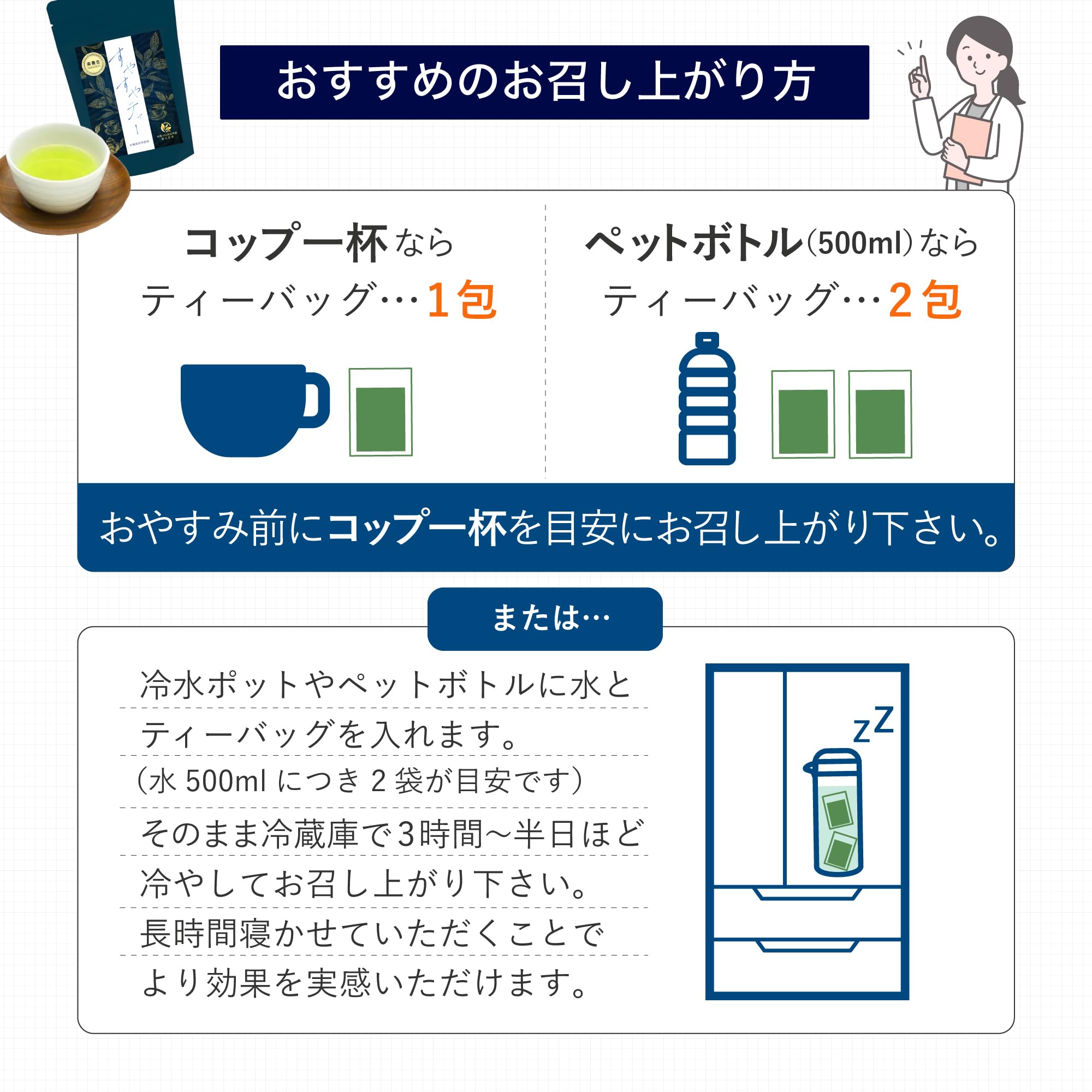 また、緑茶を低音で抽出すると癒し成分であるテアニンが多く抽出され、ゆったりとした休息へ導いてくれます。