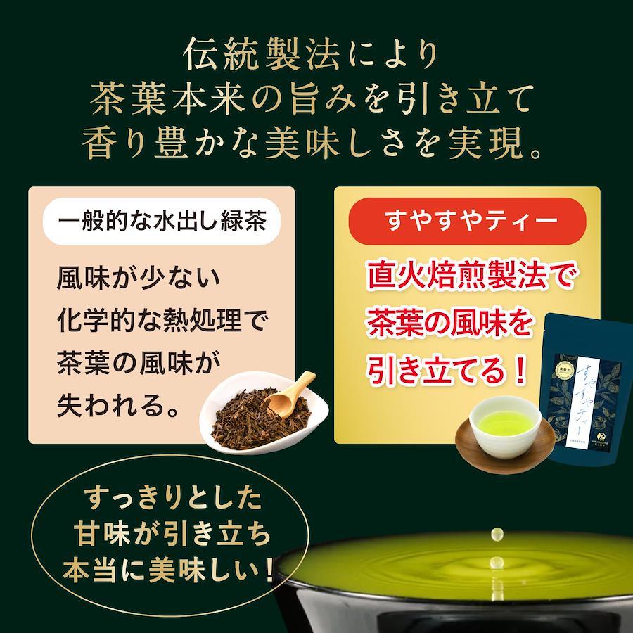 身体に優しい水出し設計水出し緑茶は、低い温度で抽出するためカフェインがほとんど出ないのが特徴。