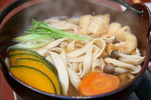 厳選した小麦粉と、日本名水百選にも指定されている八ヶ岳南麓高原湧水群の一つ”女取湧水”の水で練り上げたほうとう麺。もちもちとした食感とほんのりと小麦の香りが鼻に抜けるのが特徴で、みそスープと非常に合い、昔ながらのほっとする味になっています。ほうとう用に調味した特製だし入り甲州みそ付。