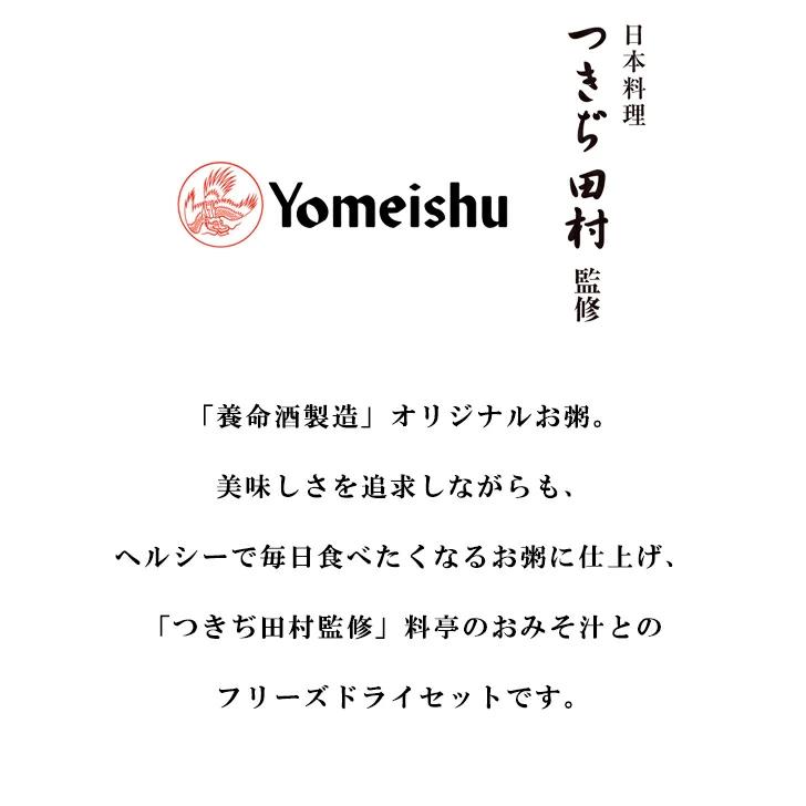 「養命酒製造」オリジナルお粥。美味しさを追求しながらも、ヘルシーで毎日食べたくなるお粥に仕上げ、「つきぢ田村監修」料亭のおみそ汁とのフリーズドライセットです。
