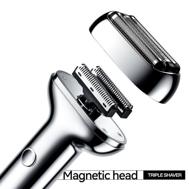 カラー:替刃-Silver◆商品名:yoose交換用ヘッド往復式電気シェーバーの磁気ヘッド三枚刃乾湿両用合金製ミニシルバーTRIPLEシリーズ