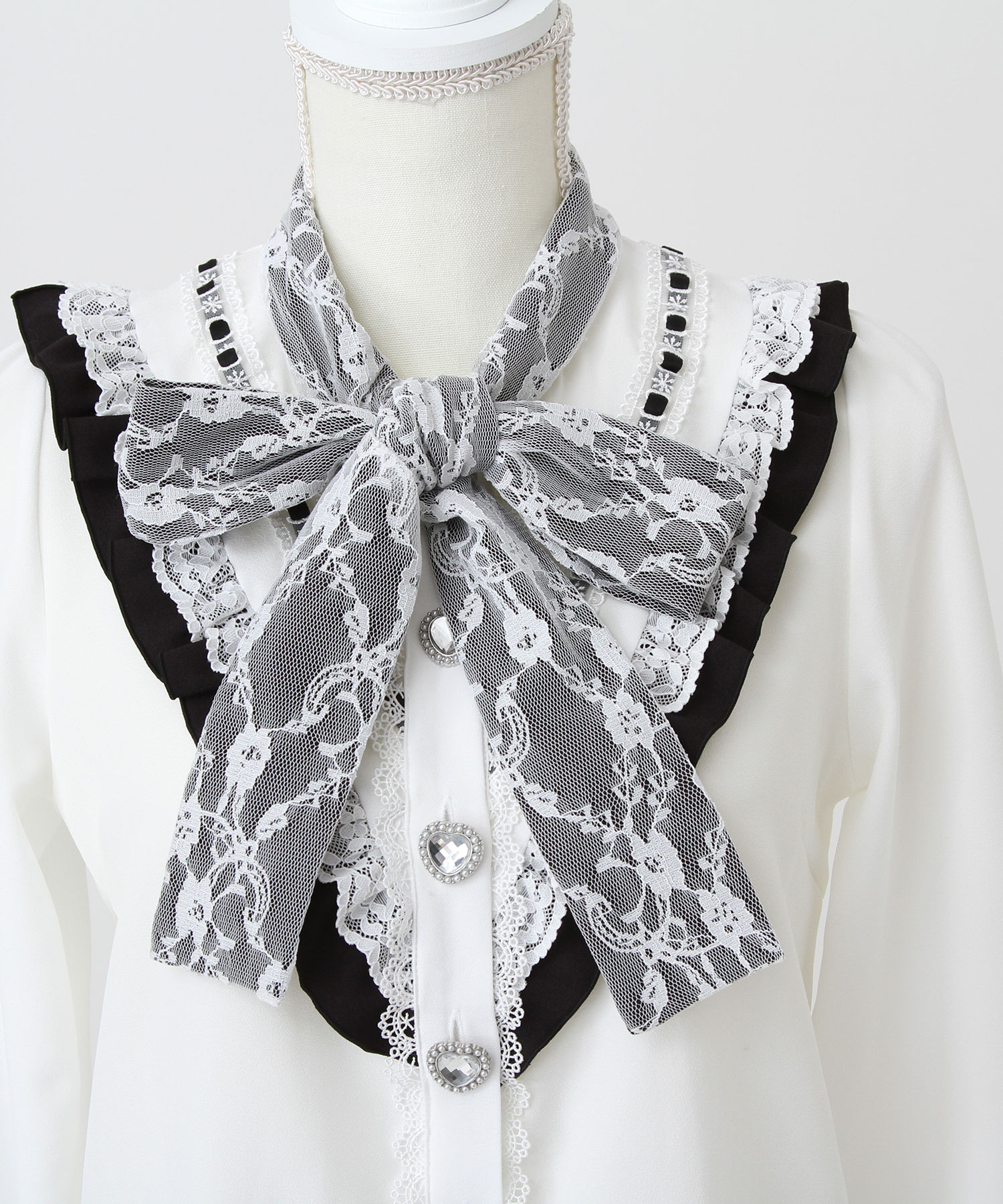 はしごレースがポイントのボウタイブラウスのご紹介