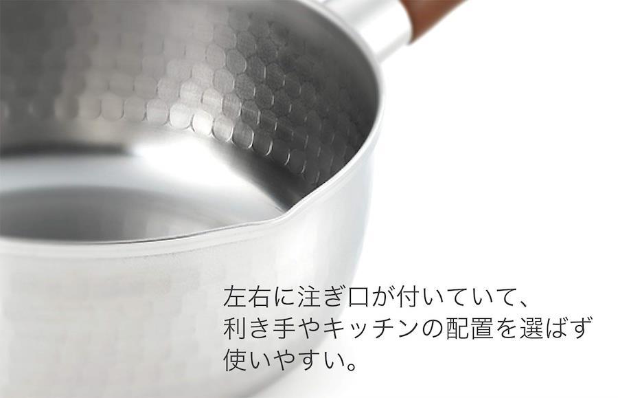 新潟県・燕三条の職人による”ふる郷の技” 「郷技(ごうぎ)」シリーズ。左右に注ぎ口が付いていて使いやすい雪平鍋。 燕三条製。