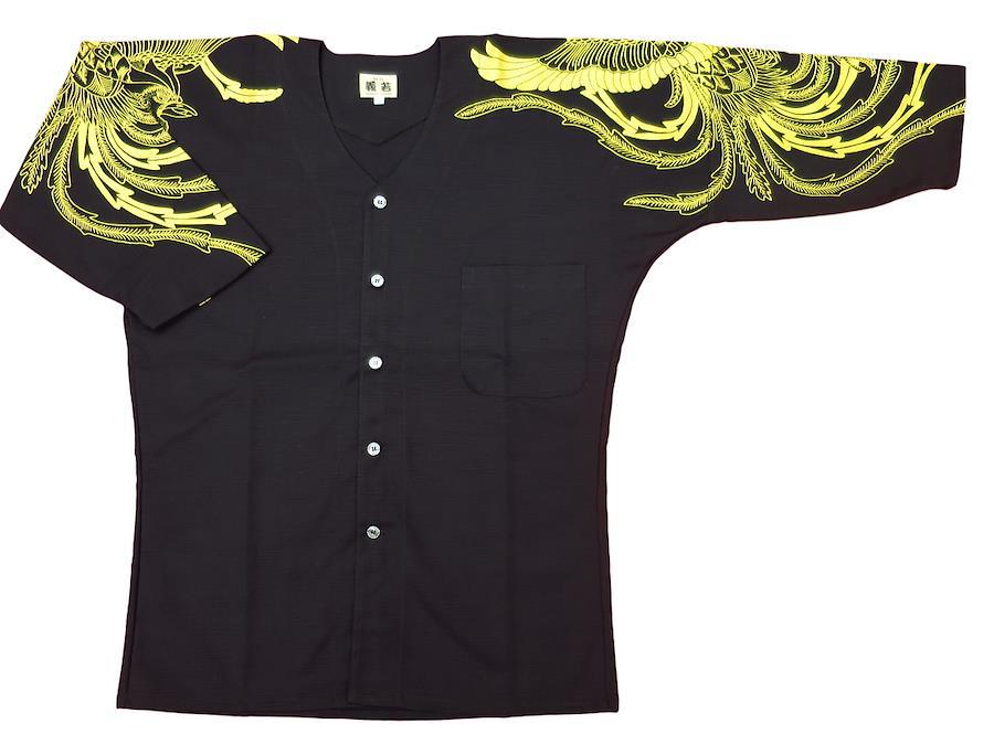 ■義若オリジナルの金彩鯉口シャツです。■素材には、こだわりの綿紬生地を使用しておりますので平織りの生地とは違う上質で高級感のある仕上がりとなっています。■巾広サイズ(3L)身丈78cm 身幅61cm ゆき70cm※鯉口シャツ単品での販売となります。商品の柄の出方は生地の裁断によりひとつひとつ異なり、商品画像の柄の出方とは異なります。