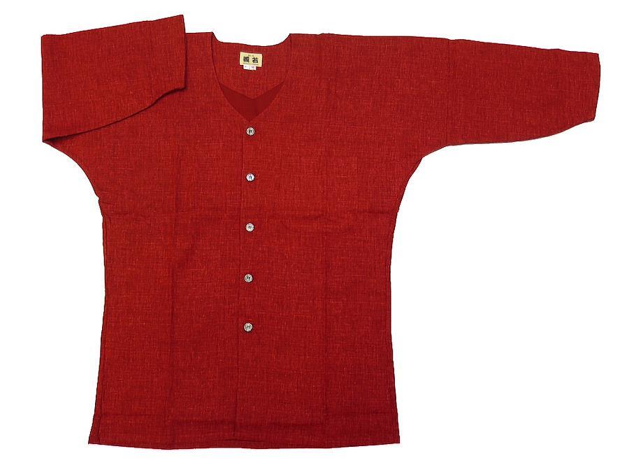 ■義若オリジナルの無地鯉口シャツです。■素材には、こだわりのむら染め生地を使用しております。■平織りの生地とはひとあじ違った風合いが、「粋」を主張しています。■素材 綿100%■小(S)サイズ 身丈65cm 身幅46cm ゆき59cm