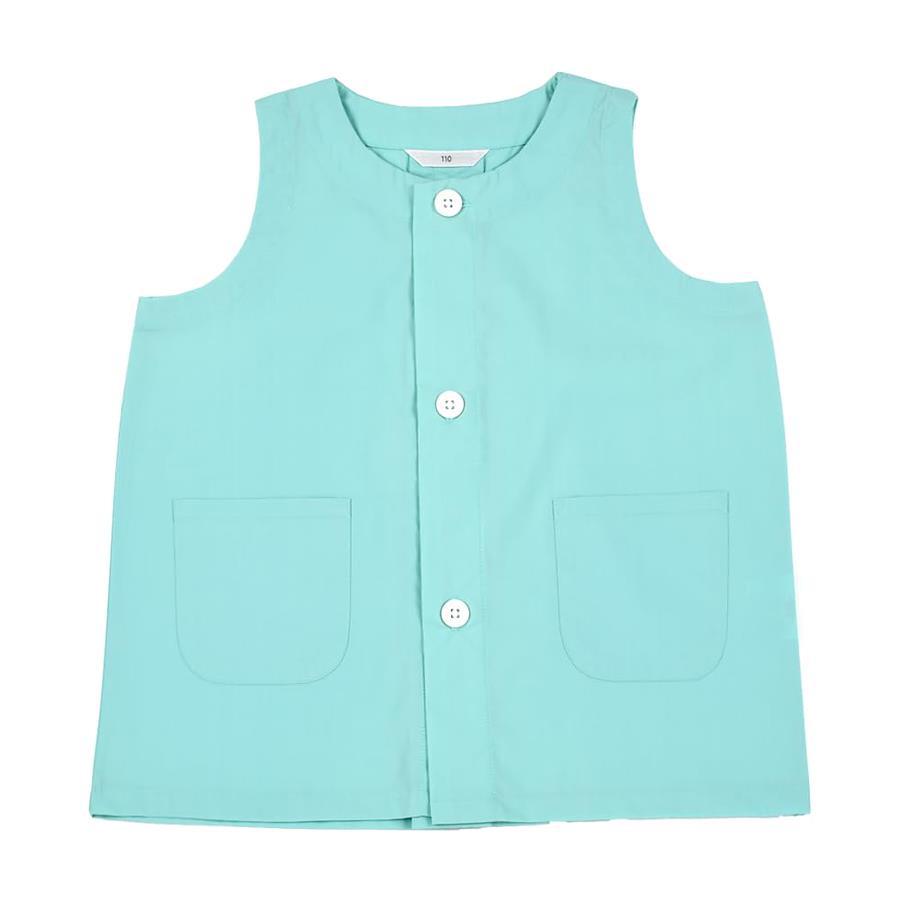 ボタンが付いた前開きタイプのノースリーブスモックです。 ボタンの掛け外しの練習ができるよう、大きめのボタンを使用。 後ろにはタックを取って、ゆとりのあるふんわりとしたシルエットになっています。 生地には撥水加工を施してあるため、汚れに強く安心。 さらに消臭・抗菌加工もプラスしたので、外で思いきり遊んでも大丈夫! お洗濯にも強く、ノーアイロンで着られます。Product detailsMaterial composition 65% ポリエステル, 35% 綿