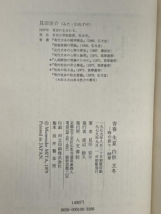 商品名:青春朱夏白秋玄冬 時の彩り・88章 人文書院 見田宗介