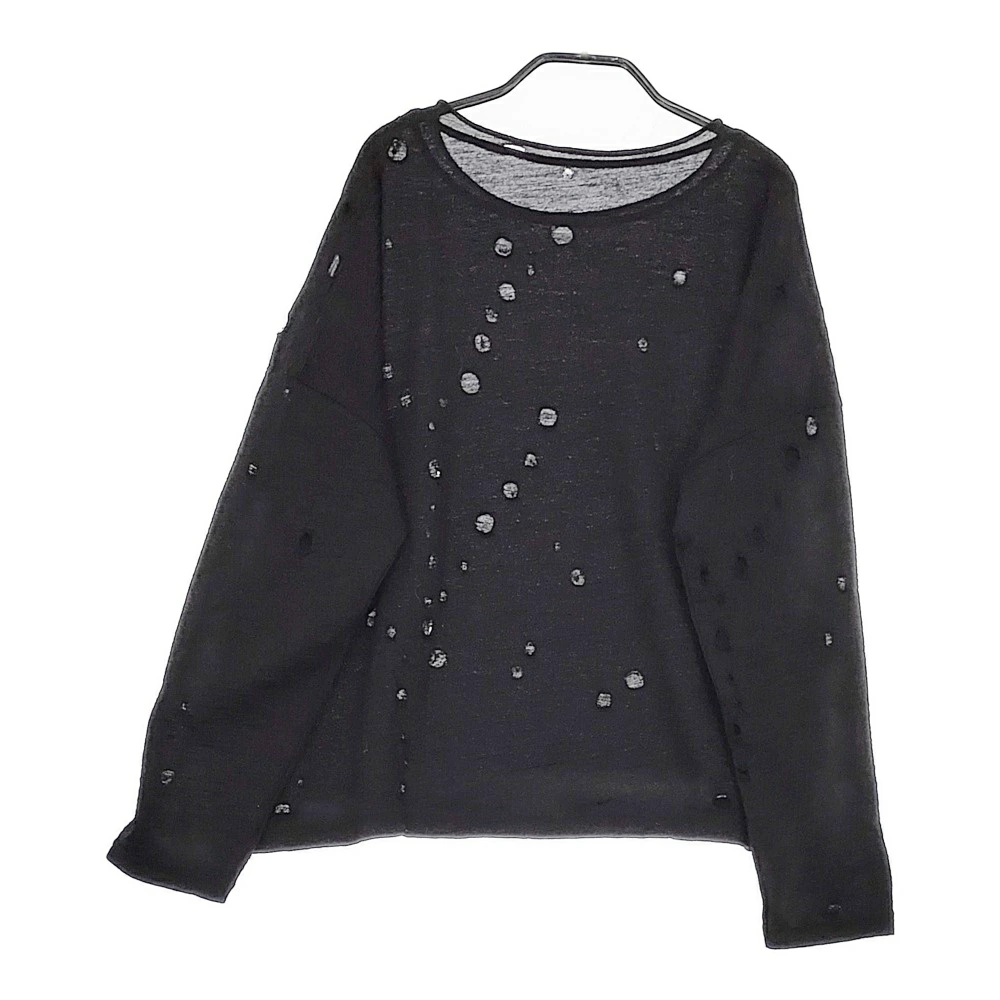Y's YX-T35-172 Perforated Wool Wide Drop Shoulder Top, Size 2, Black, Women's, Y's/Yohji [Pre-owned] 4-1210T
