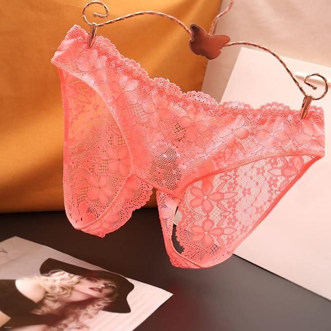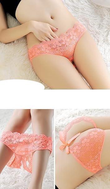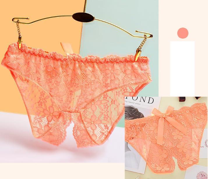 Y&T Women's Sexy Open Crotch Panties with Ribbon, Hip-Shaping Panties, Lace Panties with Holes, T-Shirt