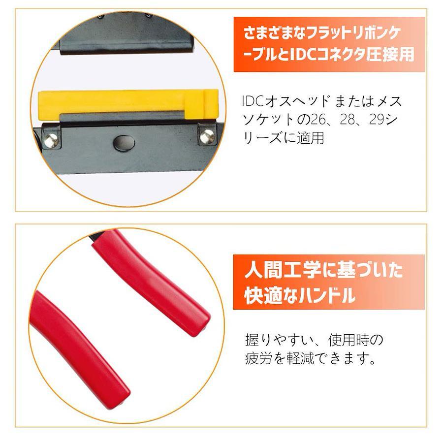 【商品仕様】モデル:YTH214;材質:高炭素鋼+プラスチック;重量:約496g。【材質】高品質の鋼でできており、高硬度で耐久性に優れています。【多機能】さまざまなフラットリボンケーブルとIDCコネクタ圧接用。IDCオスヘッドまたはメスソケットのすべてのPCアクセサリ26、28、および29シリーズで動作します。【握りやすい】人間工学に基づいた快適なハンドルにより、使用時の疲労を軽減できます。 圧着部分は平行に動く構造で片寄って圧着するなど失敗がありません。【品質保証】本店の商品は出荷前に全ての商品の検品を行っておりますのでご安心して購入ください。万が一製造上の原因による不良品がありましたら、ご連絡を頂けください。弊店はお客様のご問題を解決するまで最善を尽かしております。