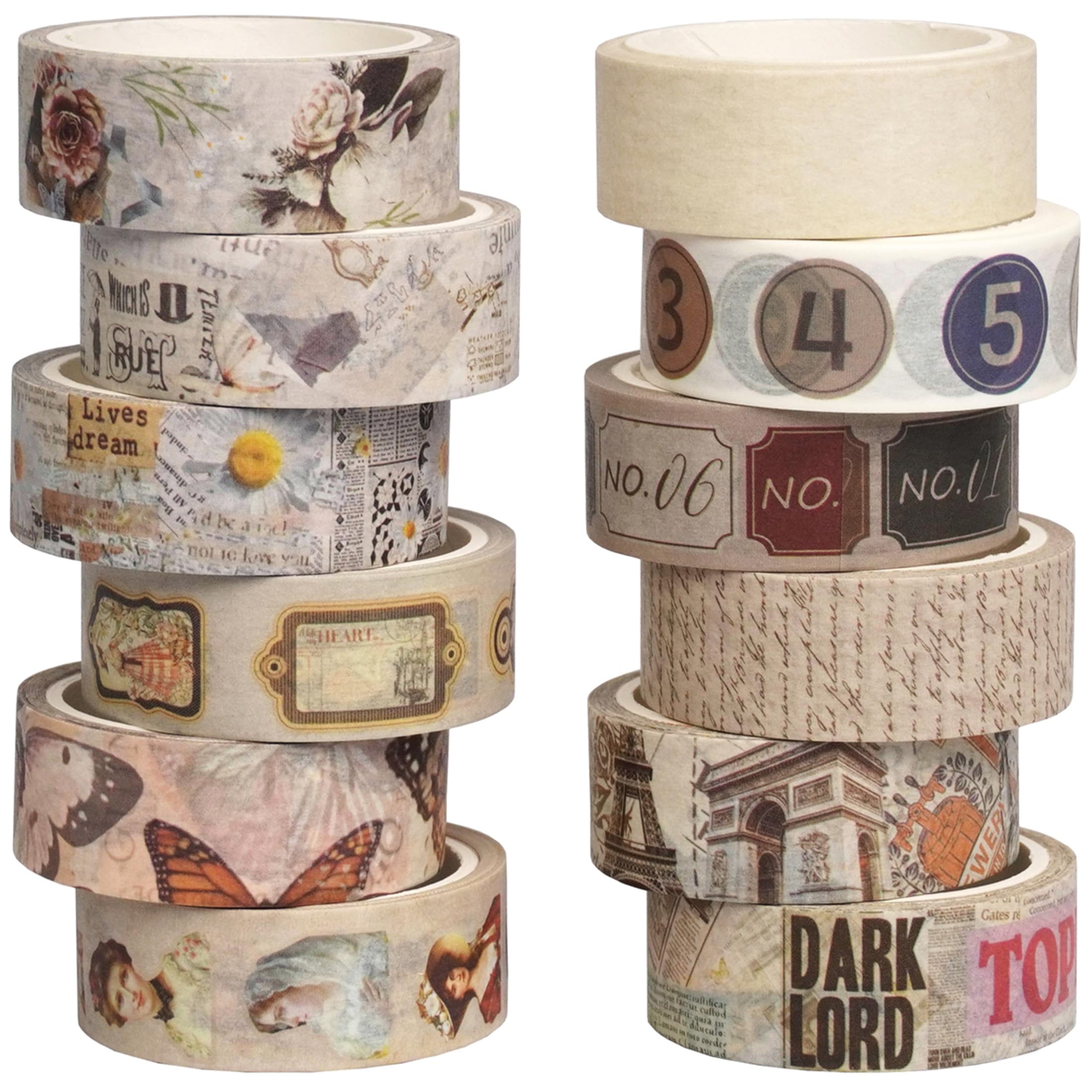 YUBBAEX 12巻 レトロ マスキングテープ セット ヴィンテージ美学 ワイド 和紙テープ アート/DIYクラフト/バレットジャーナル用品/プランナー/スクラップブック/カード/ギフトラッピングに