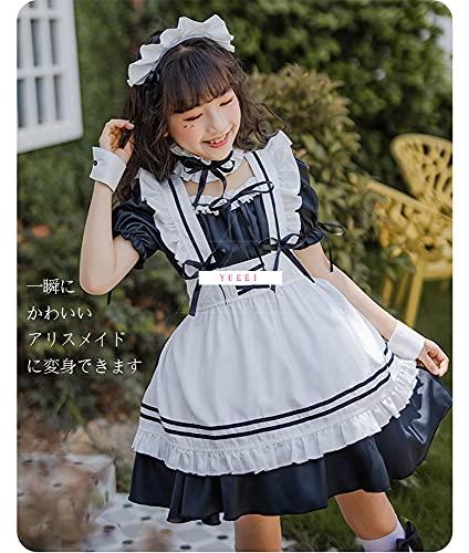 【セット内容】5点セット:カチューシャ、ワンピース、エプロン、袖カバー*2、襟。 【5サイズ展開】シンプルなデザインに豊富なサイズ展開なので幅広いお子様にお召いただけます。子供にピッタリ合った、かわいい着こなしができます。 【定番コスプレメイド服】かわいくアリスに変身♪子供用のコスプレ衣装セットです。ちょっぴりくすんだ黒/白が本物のメイドみたい。おしゃれなコスプレ用メイド服です。特別なデザインなので、かわいい感じをテーマとして、ハロウィンの雰囲気を出ています。 【高品質】高品質な素材をを使用して、手で触ると質感が良いです。かわいいカチューシャ、フリルのついたエプロン、ブラック蝶結び、やわらかく生地、肌触りも心地よい、爽やかな感じをもたらします。一瞬にかわいいメイドに変身できます。コスプレ用だけではなく、日常生活やイベントなどでワンピースとしても着やすいです。 【ハロウィンで大人気】コスプレやイベント、ハロウィンやパーティーでも大人気の定番商品、様々なシーンで活躍するメイド服コスチュームです。