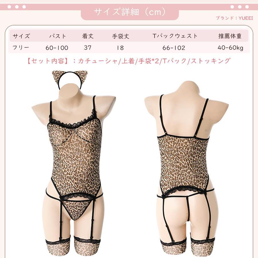 梱包サイズ?:?23.8x17.2x4.6cm;100gでの取り扱い開始日?:?2023/5/10ASIN?:?B0C4SRNPTL部門?:?レディース売れ筋ランキング:ドラッグストア-121,642位(ドラッグストアの売れ筋ランキングを見る)アダルト用コスチューム-1,261位カスタマーレビュー:4.05つ星のうち4.03個の評価vardpAcrHasRegisteredArcLinkClickAction;P.when('A','ready').execute(function(A){if(dpAcrHasRegisteredArcLinkClickAction!==true){dpAcrHasRegisteredArcLinkClickAction=true;A.declarative('acrLink-click-metrics','click',{"allowLinkDefault":true},function(event){if(window.ue){ue.count("acrLinkClickCount",(ue.count("acrLinkClickCount")||0)+1);}});}});P.when('A','cf').execute(function(A){A.declarative('acrStarsLink-click-metrics','click',{"allowLinkDefault":true},function(event){if(window.ue){ue.count("acrStarsLinkWithPopoverClickCount",(ue.count("acrStarsLinkWithPopoverClickCount")||0)+1);}});});登録情報取り扱い案内 洗濯機洗い★【素材構成】:ポリエステル。伸縮性あり。★【5点セット】:カチューシャ/上着/手袋*2/Tバック/ストッキング。★【サイズ】:サイズはワンサイズ(S-XL)となります、バスト60-100cm、着丈37cm、手袋丈18cm、Tバックウェスト66-102cm、推薦体重40-60kg。★【豹柄コスプレ】:体のラインにピッタリフィットします。豹柄模様がセクシーさを、猫耳カチューシャがかわいいさを演出。極薄軽量なシースルーボディスーツは貴方の目線を釘付けにします。★【彼女や奥様へのプレゼント】ネココスに必要なものが全てセットになっています。お手軽でお得に可愛いくてセクシーな猫少女に変身できます。マンネリしたカップルや夫婦との夜に刺激をもたらします、上品な生地、触感も着心地も良いランジェリー。(#lf)(#lf)(#lf)商品購入前に、ストア紹介ページをご確認ください。