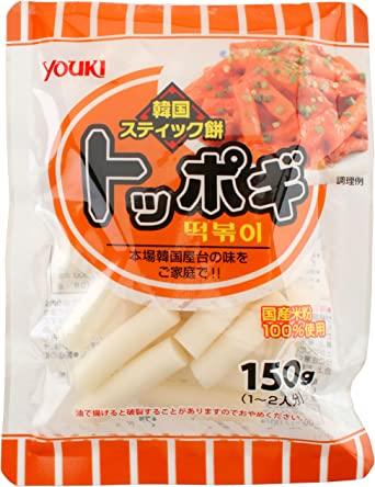 「トッポギ」はスティック状の韓国餅。煮込みながら炒める料理に最適です。韓国屋台の味"トッポギ(韓国餅のコチジャン煮込み)"をぜひご家庭で楽しんでください。もちっとした食感で歯ごたえ十分。炒め物、煮物、鍋物など、幅広くご使用いただけます。日本国産です。