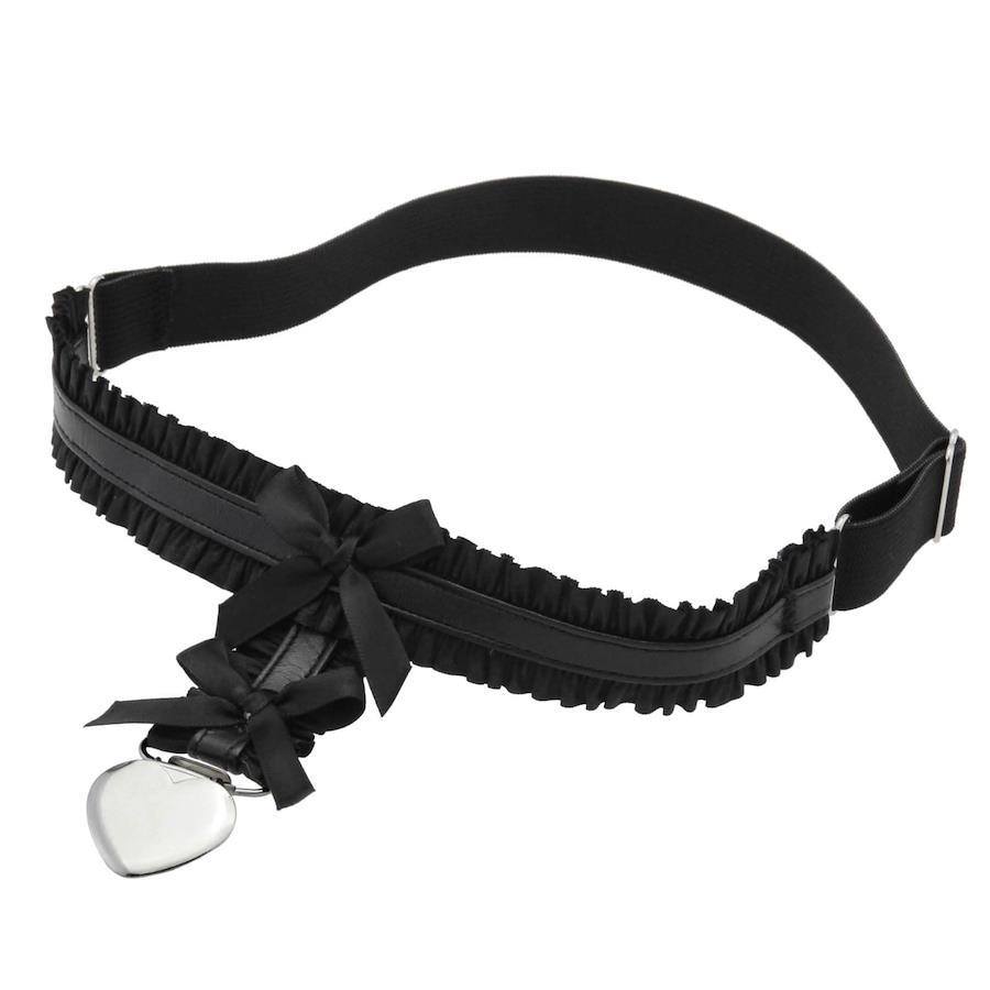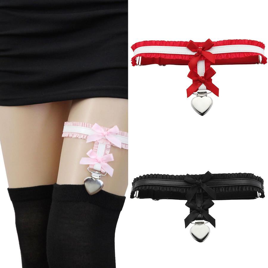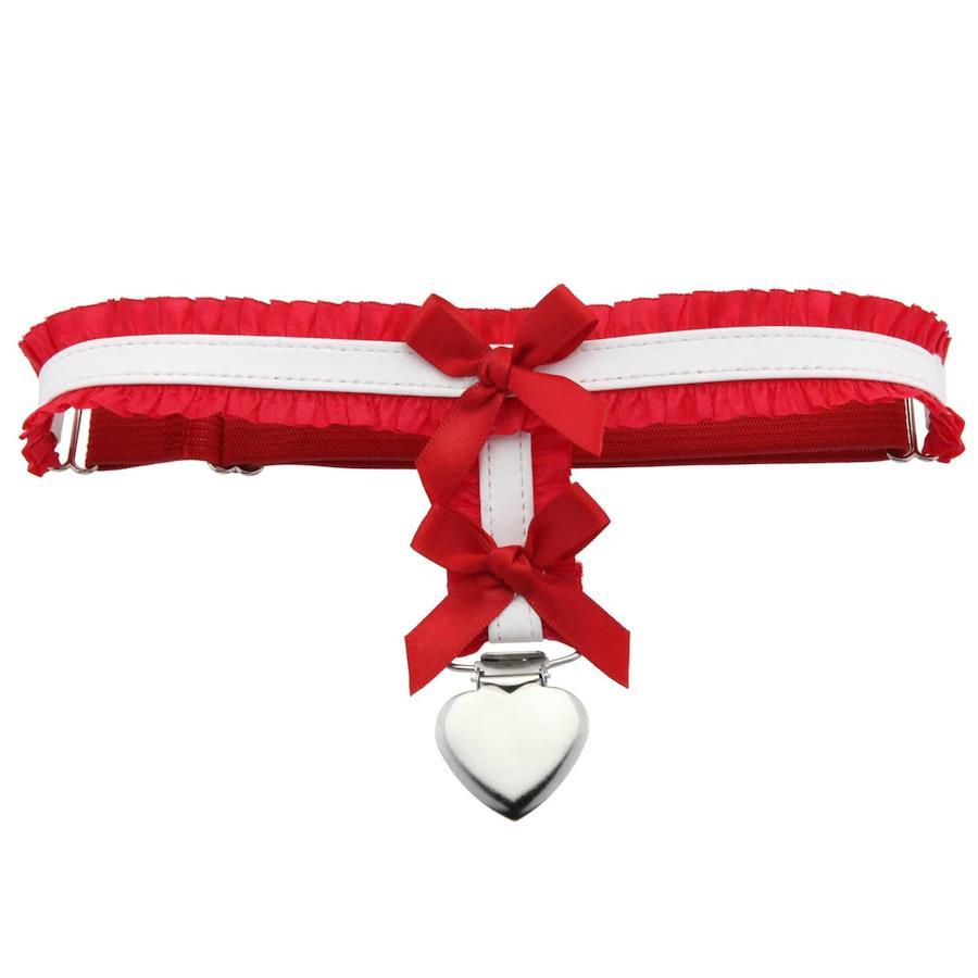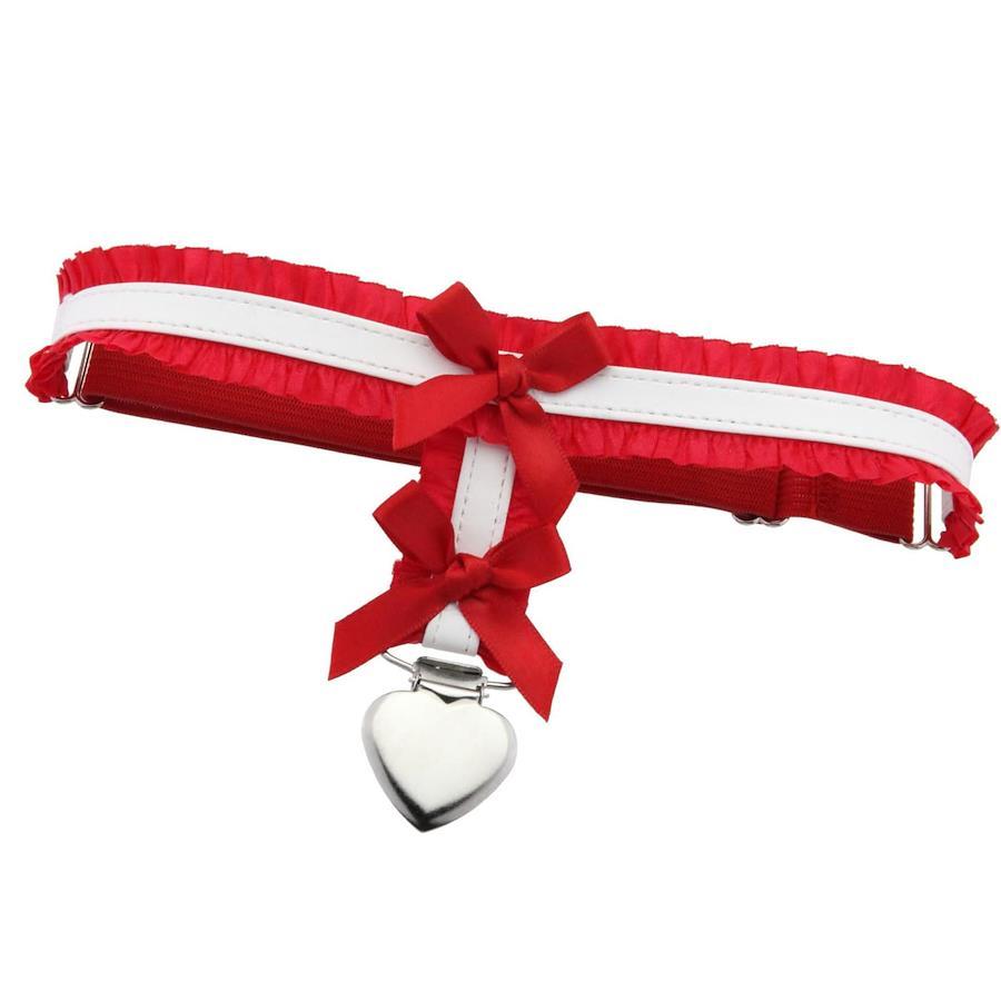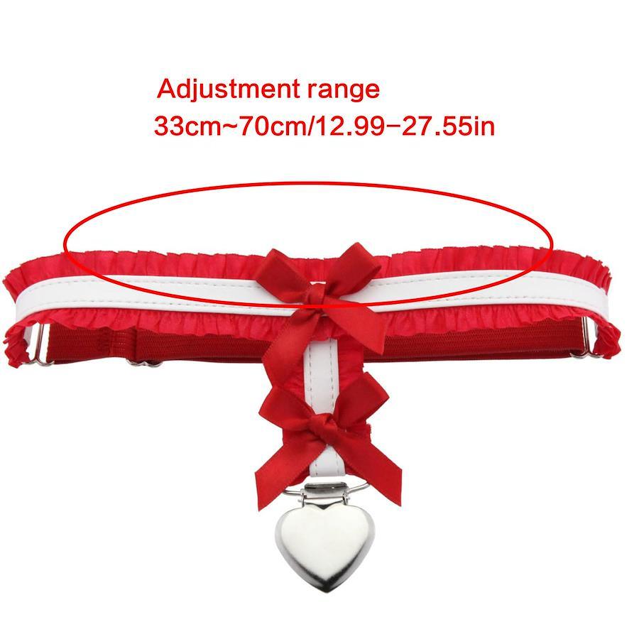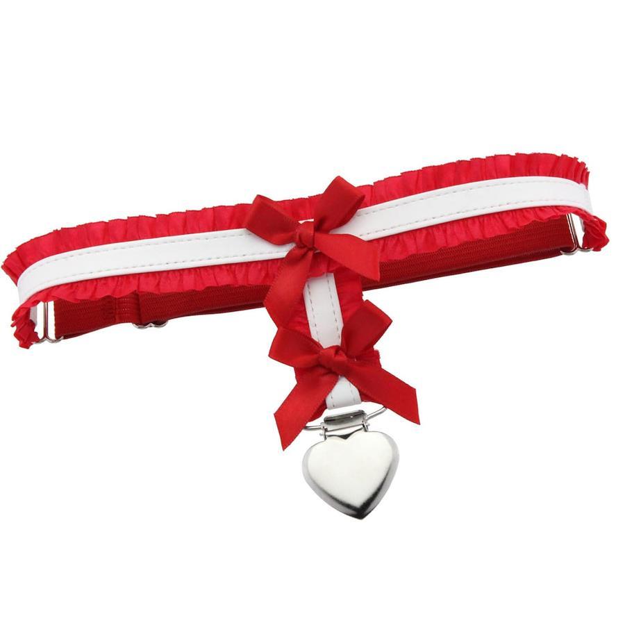 YUNGLOO Adjustable Ruffle Lace Embellished Faux Leather Leg Garter Belt with Heart Shape Clips, Elegant Thigh Band Strap for Women