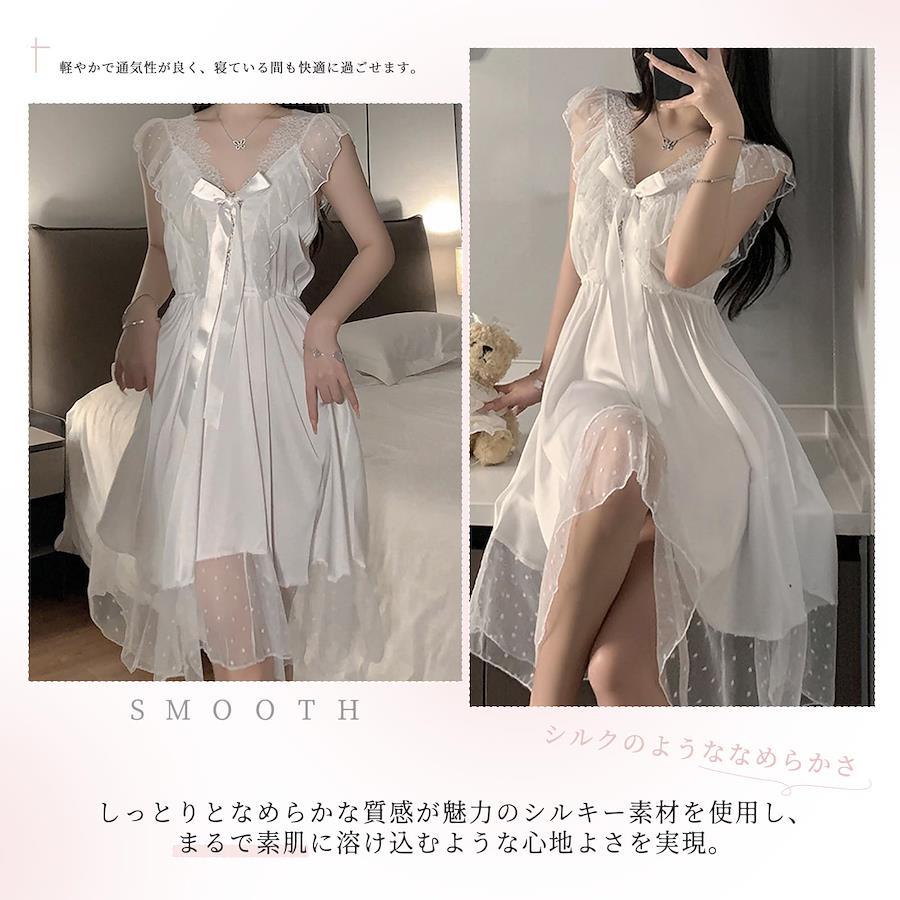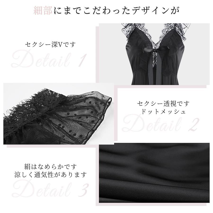 【シルクのようななめらかさ、極上の着心地】しっとりとなめらかな質感が魅力のシルキー素材を使用し、まるで素肌に溶け込むような心地よさを実現。軽やかで通気性が良く、寝ている間も快適に過ごせます。肌触りの良さにこだわった生地が、リラックスタイムをより上質なものに。ルームウェアでありながら、エレガントさと機能性を兼ね備えた一着です。【大人の色気を引き立てるセクシーなデザイン】デコルテを美しく見せる深Vネックと、背中まで大胆に開いたバックVデザインが特徴。女性らしさを際立たせつつ、洗練された大人の魅力を演出します。胸元のリボンがフェミニンなアクセントとなり、甘さとセクシーさを絶妙に融合。華奢な肩を美しく見せるノースリーブ仕様で、ナチュラルな色気を引き出します。【透け感のあるレース&チュールで軽やかに】胸元の繊細なレースが上品で繊細な雰囲気をプラスします。軽やかなチュールの透け感が程よいセクシーさを演出し、動くたびにふんわりと揺れるシルエットが女性らしさを引き立てます。細部にまでこだわったデザインが、大人のための上品なルームウェアとして魅力を放ちます。【締め付け感のないストレスフリーな着心地】胸元にパッドがなく、リラックスした着心地を実現。締め付けのないデザインが、寝るときも快適で、ストレスフリーに過ごせます。動きやすく軽やかで、肌に触れる部分が少ないため、夏のナイトウェアとしてもぴったり。寝るときだけでなく、お風呂上がりのリラックスタイムにも最適です。【特別な時間を演出するエレガントなルームウェア】シンプルながらも華やかさを兼ね備えたデザインで、特別な夜をよりロマンティックに。自分へのご褒美としてはもちろん、大切な人へのプレゼントにも最適。高級感のあるデザインが、特別な日や旅行先でのナイトウェアとしても活躍。普段のルームウェアとは一線を画す、特別感のある一着です。(#lf)(#lf)(#lf)商品購入前に、ストア紹介ページをご確認ください。