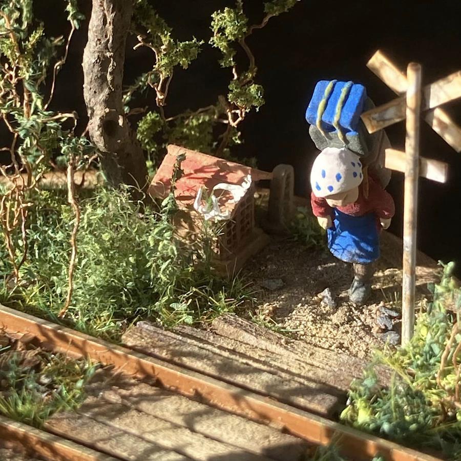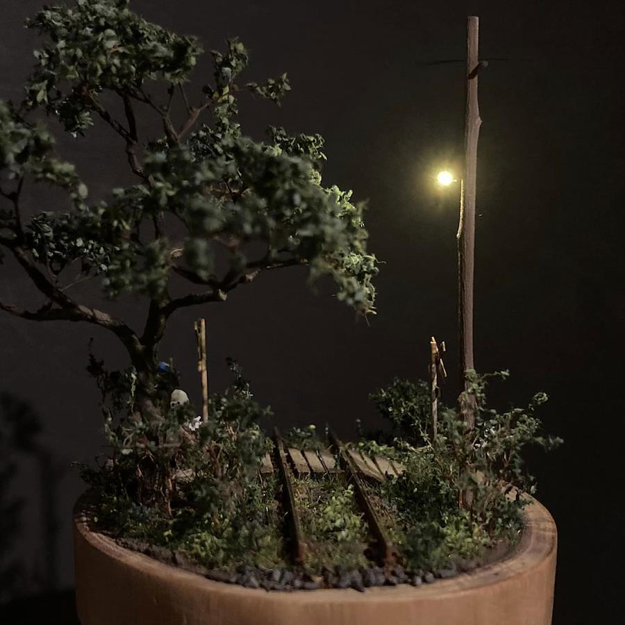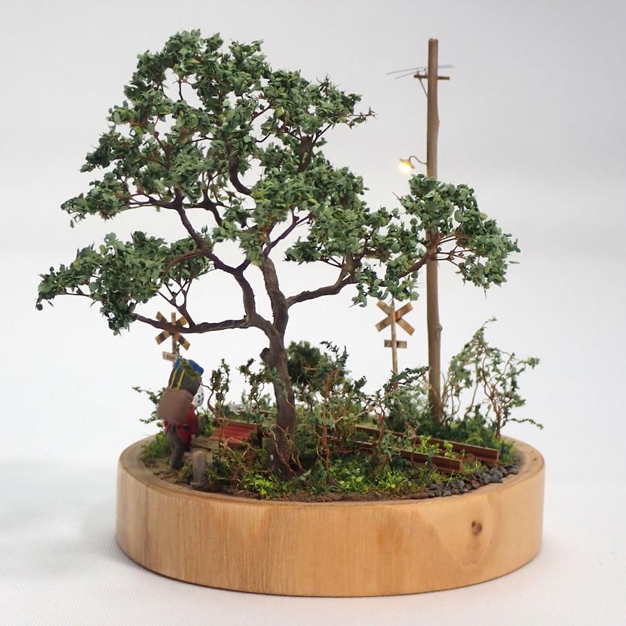 He uses his superior skills to create detailed parts precisely on his own. The elements that make up the scene have been skillfully selected and arranged, so that even though the work is small in size, it can be viewed and enjoyed from a 360-degree angle.