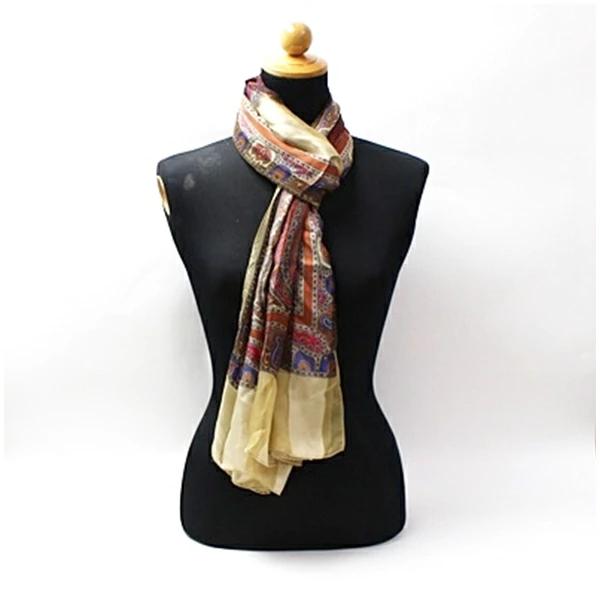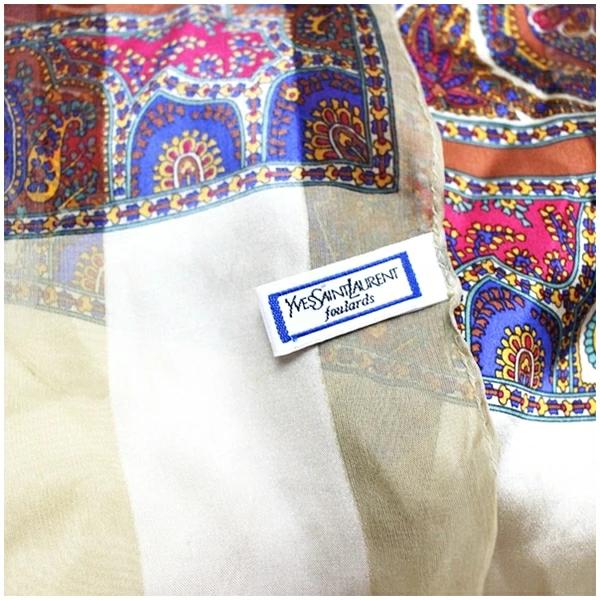 | 商品名 | イヴサンローラン シルク 長方形ストール スカーフ ベージュ×ブラウン 中古 Aランク YVES SAINT LAURENT |