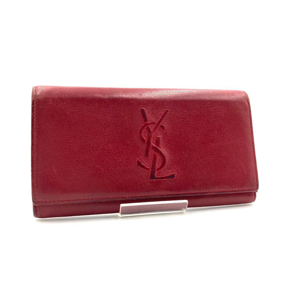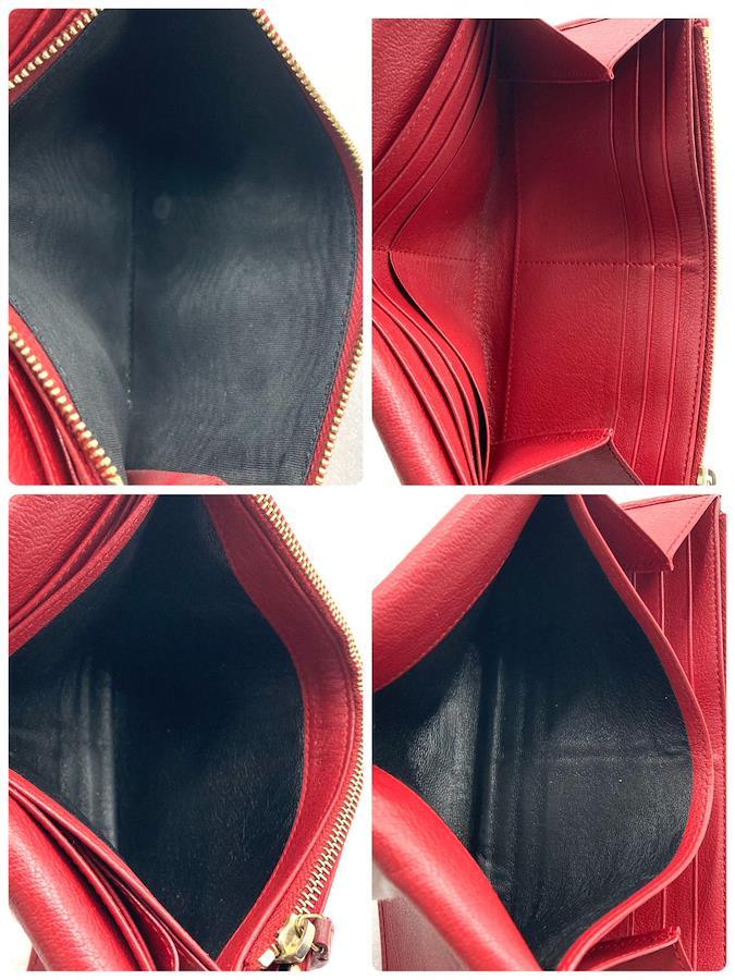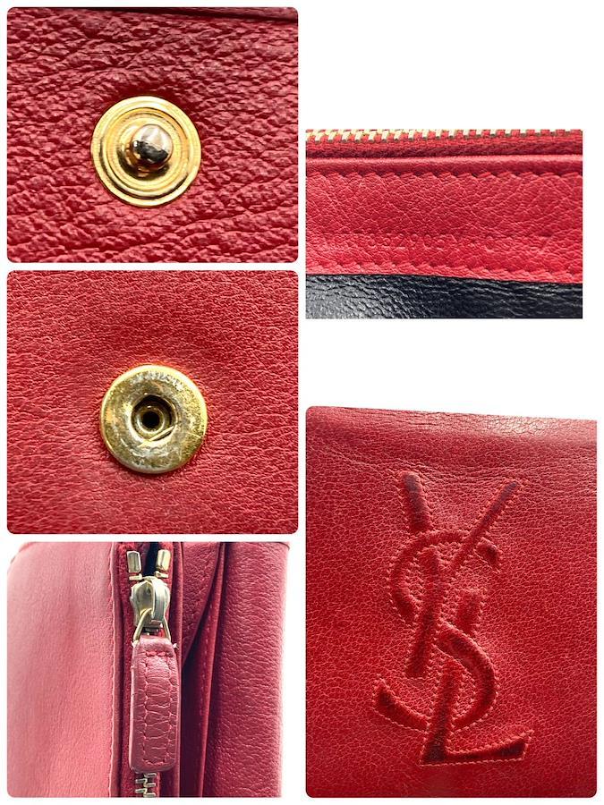 ■商品概要Yves saint Laurent イヴサンローランYSLロゴロングウォレット 二つ折り長財布レザー 本革レッドゴールド金具刻印ありレディースラグジュアリー 高級 ハイブランド