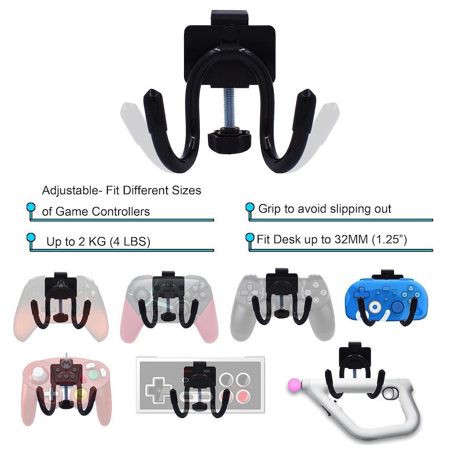 デスクマウントゲームコントローラー - ゲームコントローラーは含まれていません。 PS3/PS4/PS5/Xbox 360/Xbox One/S/X/Elite/Series S/Series Xコントローラー、Proコントローラーなどに適しています。ゲームコントローラーはありません。デスクに害を与えません - クランプはEVAパッドで取り付けられ、スクリュークランプもゴムキャップで取り付けられています。 デスクやメガネに傷をつけません。 デスクペイントに3月はありません。厚さ32mm(1.25インチ)までの平らな表面にフィットします。 32mm (1.25インチ) 以上の曲面や厚い表面には適していません。最大1kg (2ポンド)、PS3/PS4/PS5/Xbox 360/Xbox One/S/X/Elite/Series S/Series Xコントローラー、Proコントローラーに適しています。ほとんどのゲームコントローラーで調節可能 - ラックの先端は調節可能で曲げられます - 市場のほとんどのコントローラーに適合します。 ほとんどの古いレトロなコントローラーに適しています。 PS4コントローラー。 机の上の汚れを取り除き、飲み物に近づけてください。