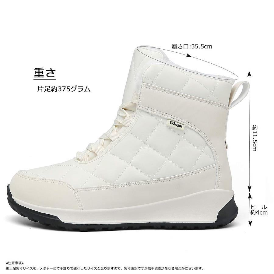 クロージャータイプ レースアップ 履き口:35.5cm/筒丈:11.5cm/ヒール:4cm /アッパー:撥水加工ナイロンアッパー【内側ボアで暖かい】防寒靴には内側全体が起毛素材だから寒がりさんもあったかい。 つま先までふわふわのボアが詰められており、暖かさにも優れています。防寒対策にピッタリで冬の通勤・通学・お出かけに暖かさを提供します。【雪・雨の日でも安心の滑らない】ゴム滑り止め底、ノンスリップ、耐摩耗性、ソールは滑りにくい凸凹ような深い柄加工を施した防滑性の優れたソールです。雨や雪などの濡れた地面で歩行をサポートして安心で歩行できる。【疲れにくい】ぺたんこでしっかりと支えてくれるので、旅行などで長時間歩いても疲れにくい&足が痛くなりにくい、ミドルブーツです。 つま先に保護設計を採用しています、ケガ防止!足をしっかり保護できます!【幅広く活躍スノーブーツ】冬に必要な防寒、防滑、撥水加工を兼ね備えたアウトドアテイストのスノーブーツです。 軽快に歩きやすく冬の雪道も安心、屋外での作業や通勤、通学、旅行、トレーニング、スポーツアウトドア、ハイキング、アウトドア活動などにもお勧めです。