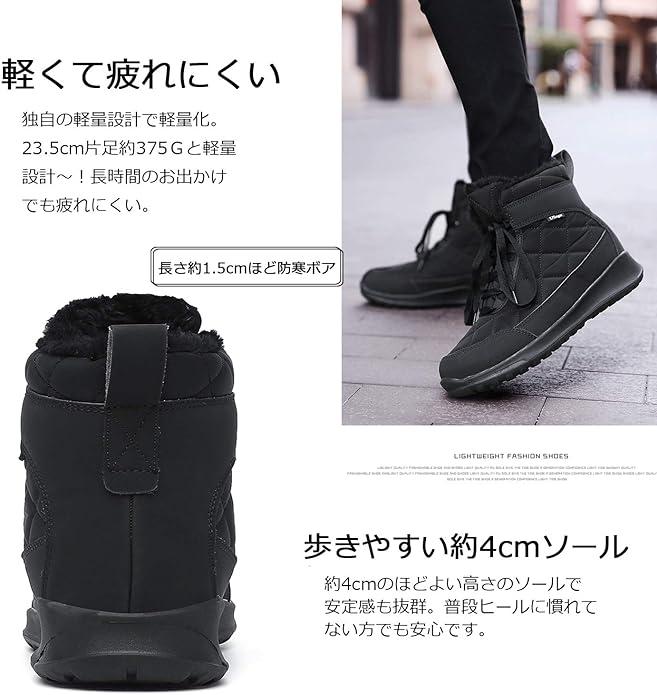 ■商品名[Zcoli] スノーブーツ レディース 軽量 裏起毛 防寒靴 防滑 防寒 コンフォートシューズ 厚底 雪用 ショート ブーツ 冬用 通学 通勤 黒 23.5cm
