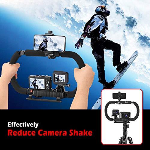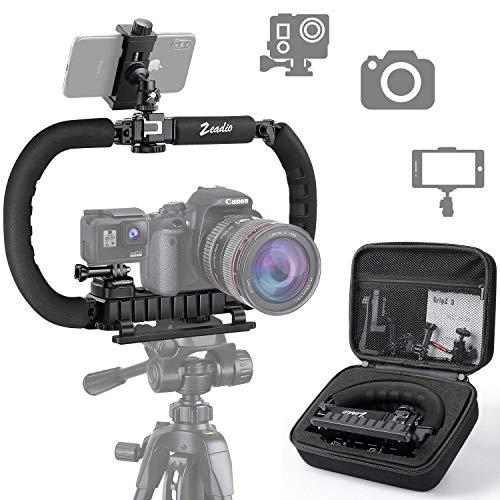 片手モードと両手モードの多機能スタビライザー。 両手でハンドルを保持すると(両手モード)、ビデオ撮影時のカメラのブレを効果的に減らすことができます。ローアングル撮影に最適なシステム。 地面に置くか、片手モードに切り替えてローアングルビデオを撮影できます。ノブの底部に組み込まれた1/4インチのネジ穴。 三脚、スライダー、ドリーに接続して、安定した高品質のビデオを撮影できます。付属物:1 x バックル付きの耐衝撃キャリングケース、2 x GoPro用ホルダー、1 x スマートフォン用ホルダー、1 x コールドシューアダプター。 すべてのユニットは付属のキャリングケースに収納でき、持ち運びが簡単で、屋外や旅行の撮影に最適です。ダブル1/4インチネジとトリプルコールドシューマウントにより、複数の写真デバイスとアクセサリーを同時に取り付けることができます。 プロの撮影ニーズに対応します。