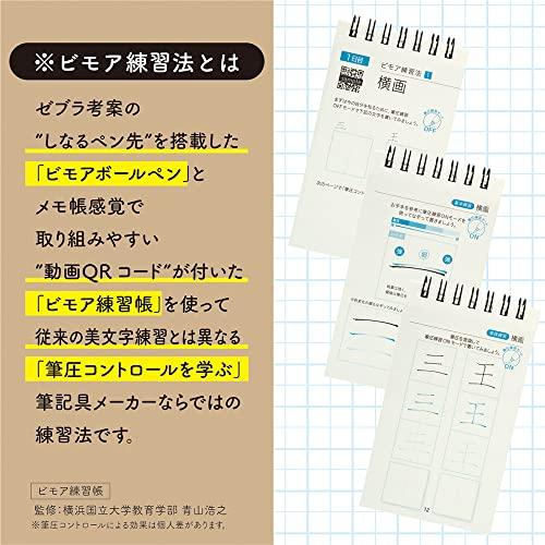 ビモア練習法とは?ゼブラ考案のしなるペン先を搭載したビモアボールペンとメモ帳感覚で取り組みやすい「ビモア練習帳(動画付)」を使って筆圧コントロールを学ぶ筆記具メーカーならではの練習法です。本製品のポイントメリハリ筆記ができる専用ボールペン メリハリ筆記青山氏メソッド(本 動画)=筆のような美文字の書き方が身につくメーカーによる説明