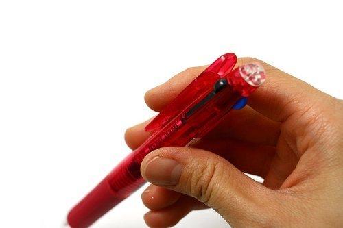 さらさら書き味のサラサシリーズ。ノック式で切り替えもスムーズな黒、赤、青の3色ゲルインクボールペン