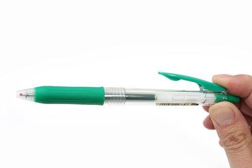 ノック式ゲルボールペン、日本の文房具ブランドZablaの丈夫なクリップ付きサラサクリップ、ゼブラサラサクリップ0.3、グリーン。