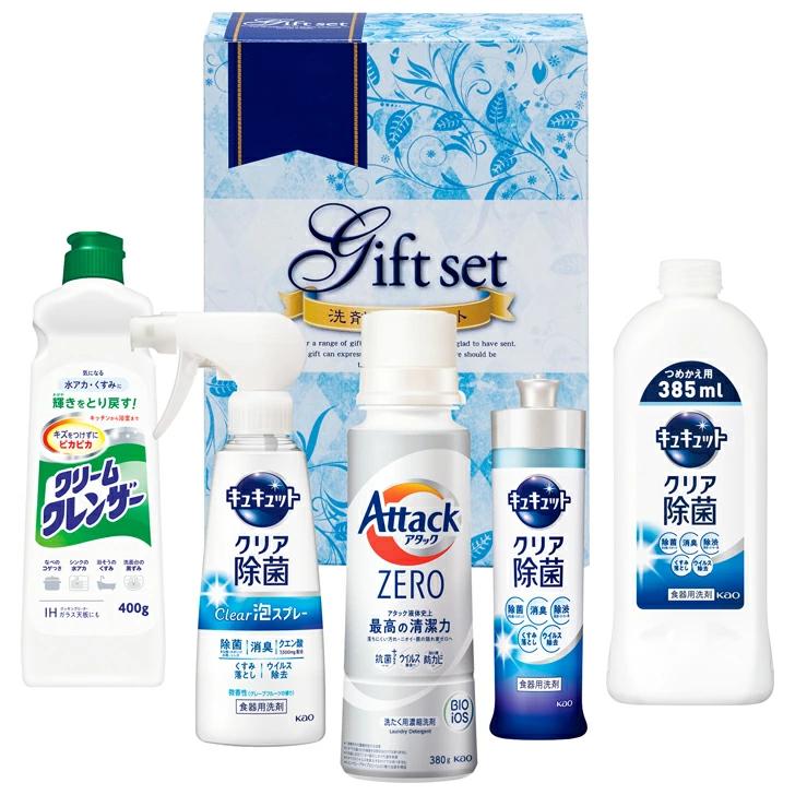 花王アタックゼロ380g、花王キュキュットクリア除菌240ml、詰替385ml、花王キュキュットクリア除菌泡スプレ-300ml、クリームクレンザー400g×各1