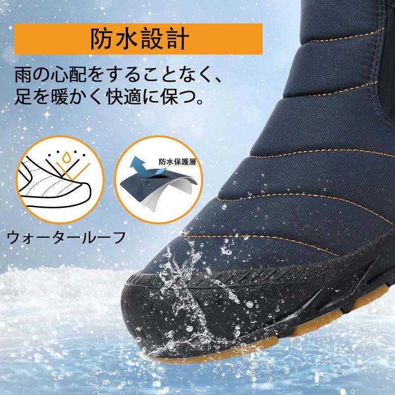 クロージャータイプ ファスナー 【通気性のある暖かい裏地】スノーブーツの裏地はウールのような素材でできており、暖かく、柔らかく、快適です。 このスタイリッシュな冬のスノーブーツは、まるで肌触りの良いジャンパーのような暖かさで足を包み込み、つま先まで暖かさが広がり、防寒性を大幅に向上させます。 この暖かさは、冬の通勤、通学、お出かけに最適です。 冬の寒さを感じさせません。【滑り止めソール】滑り止めのしっかりしたグリップを提供する特殊なラインを持つ耐久性のある頑丈なゴム底を使用し、優れた滑り止め性能で、どんな濡れた路面を歩くときでも安定したサポートを提供し、安全性を大幅に向上させます。 また、このメンズブーツは超耐摩耗性、滑り止め、柔軟性、耐衝撃性があり、長時間の着用や歩行に適しています。【防水アッパー】このスノーブーツのアッパーは高品質の防水生地を採用し、より滑らかで柔らかく、雨や雪などの液体の侵入を効果的に遮断し、一日中ドライな履き心地を確保します。 完全防水ではございませんので、雨天や積雪時に長時間履いていると水がしみ込む場合がございますので、安全には十分ご注意ください。【ユニークなデザイン】1.つま先保護設計は、つま先の怪我を防ぎ、足をよく保護します。2.紐なしメンズスノーブーツは、高品質のサイドジッパーで設計されており、着脱が簡単で、伸縮性が高く、繰り返し引っ張っても変形せず、足に合わせて自由に調整することができます。【適用な場面】シンプルなデザインと控えめなカラーで、どんなファッション要素にも合わせやすいウィンターブーツで、男女問わずおすすめです。 防寒性と保温性に優れ、雨の日や寒い日にとても実用的です! 街中だけでなく、キャンプなどのアウトドアでも足元を暖かく快適に保ちます。