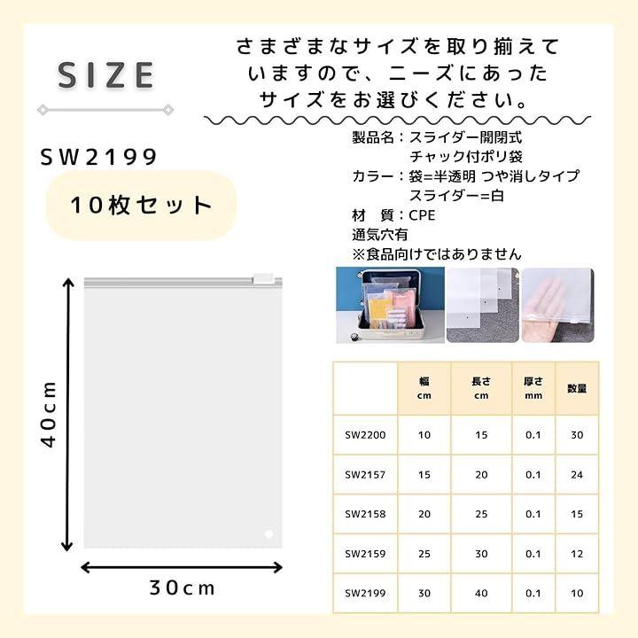 3world ジップ袋 スライダー開閉 チャック付 ポリ袋 スライダーを移動させることで、楽に開閉が可能なポリエチレン製のジッパーバッグです。