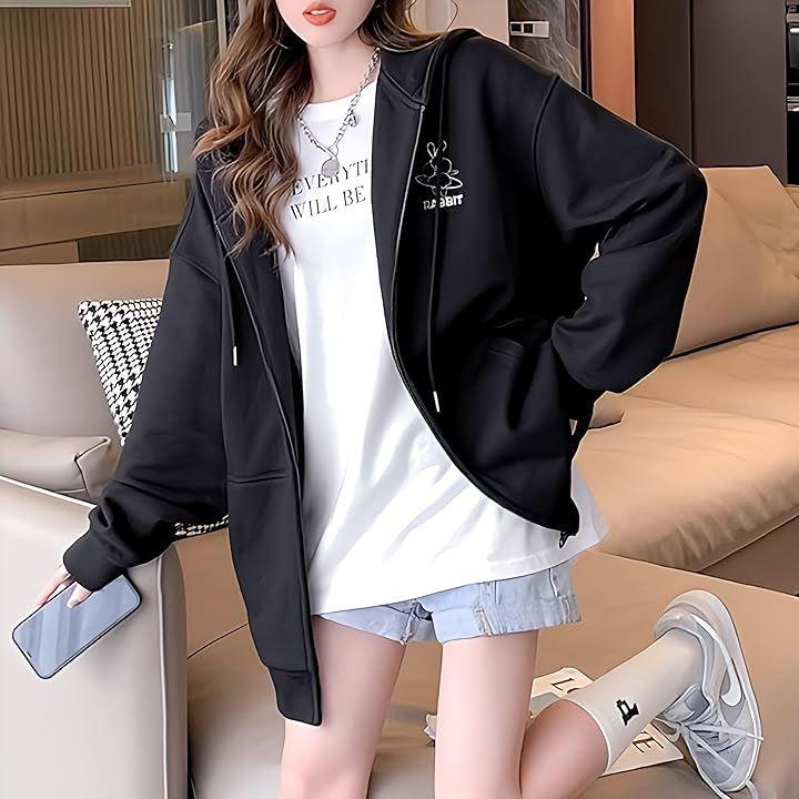 「ラビットロゴが可愛いレディースジップアップパーカー」胸元に施されたラビットの刺繍がさりげないアクセントに。